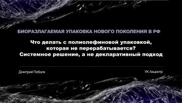 Дмитрий Пебалк, Акцентр- "БИОРАЗЛАГАЕМАЯ УПАКОВКА НОВОГО ПОКОЛЕНИЯ В РФ: Что делать с полиолефиновой упаковкой, которая не перерабатывается?Cистемное решение, а не декларативный подход"
