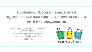 Анна Гаркуша, Ассоц-я РазДельный сбор- "Проблемы сбора и переработки одноразовых пластиковых пакетов-маек и пути их преодоления"